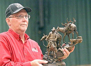 "Workin' Slow and Steady" sculpture donated by Moore Oil Company was one of the many items auctioned off at the 28th Annual Big Game Banquet of the Rocky Mountain Elk Foundation Saturday evening at the Memorial Center. (Gary Morningstar 12 year RMEF volunteer)