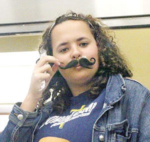 Freshman Shannon Kyes shows off her homecoming mustache during lunch at Libby High School Monday.