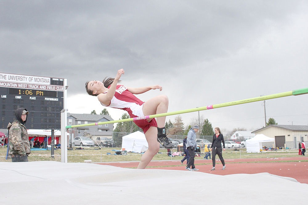 Taylor Erdman of Alberton flies over the high bar during the team's meet in Missoula last week.