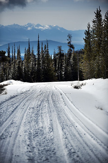 Snow covers the road near Blacktail Mountain Ski Area on Tuesday. Mountain snowpack in the Flathead River drainage is 72 percent of normal, according to figures released Wednesday by the Natural Resources Conservation Service. (Brenda Ahearn/Daily Inter Lake)