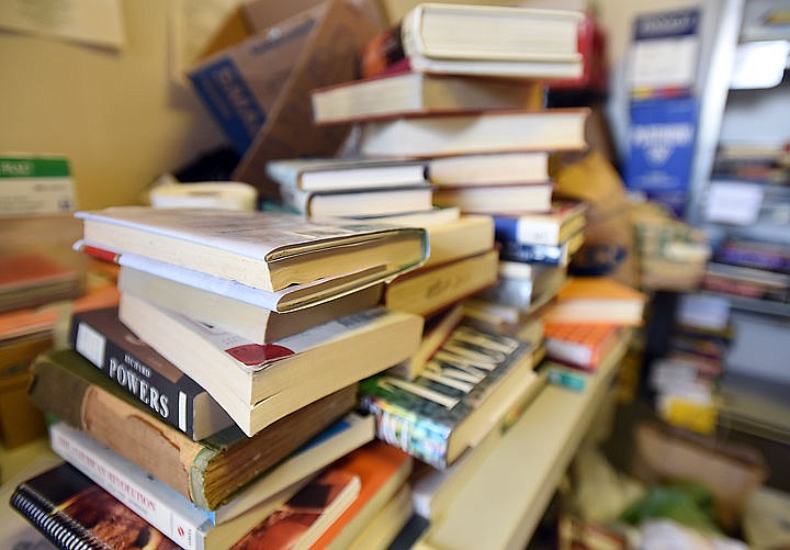 Detail of books to be sorted on Wednesday, April 8, as American Association of University Women volunteers prepare for the annual book sale. According to Book Sale Chairwoman Vicki Gockenbach this years sale expects to have approximately 8,000 books to sale. (Brenda Ahearn/Daily Inter Lake)