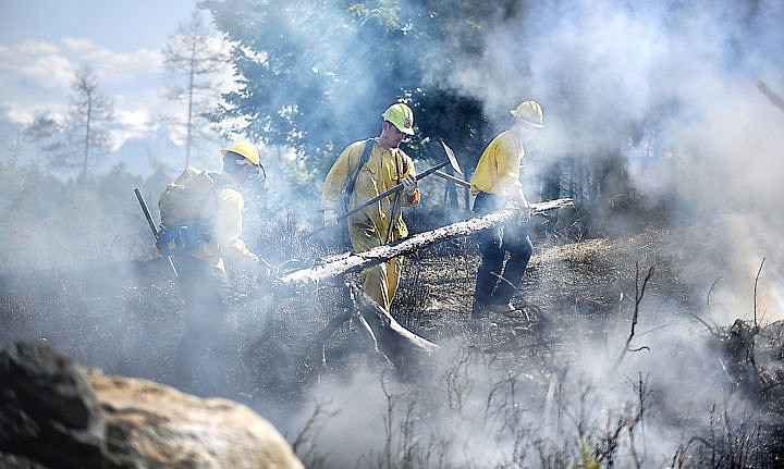Firefighters respond to a fire near Shelter Ridge Road south of Kalispell on Thursday. The fire burned 6.1 acres. (Brenda Ahearn/Daily Inter Lake)