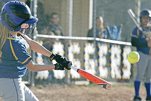Rachel Rebo smacks a double bottom of first inning vs. Whitefish 4-7-15.