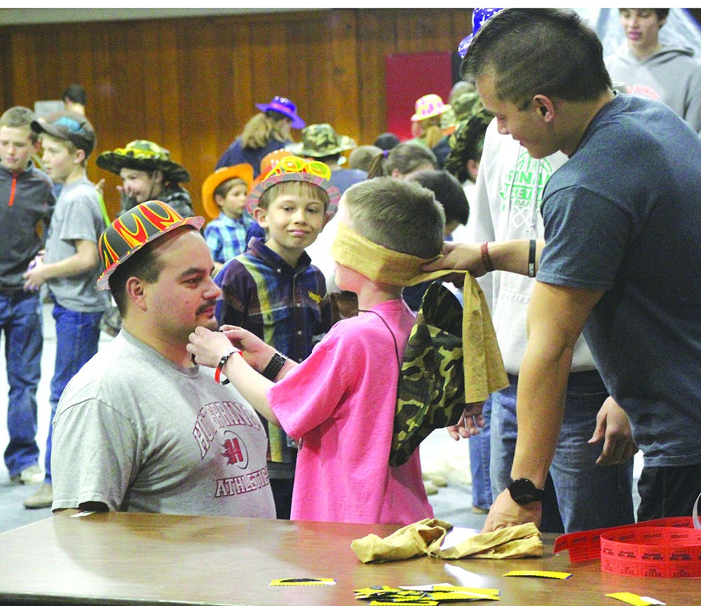 Principal Chris Clairmont (left) takes part in one of the games at last week's reading carnival in Hot Springs.