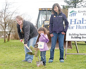 Jennifer Holm, left, breaks ground as her daughter Jazmine Holm and Rachel Elliott look on, Saturday, April 11.