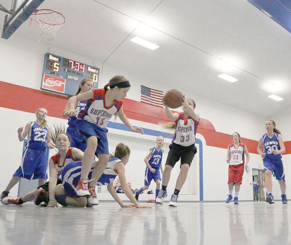 Superior gets the rebound during a tournament last week while playing against a team from Thompson Falls.