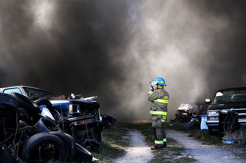 Troy's Scott Pate crashes into the pit during the long jump at the Class B state track and field championship in Kalispell on Friday. Pate finished in second with a jump of 20 feet, 11.5 inches. (Aaric Bryan/Daily Inter Lake)