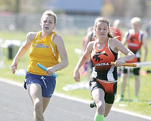 Girls 400-meter relay with Krysten Mossberg, left and Kaylee Kronsperger.