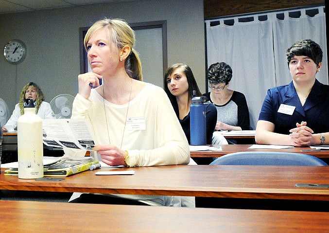 Montana State University College of Nursing student Erin Ramsey watches a video presentation during class at the Kalispell Medical Arts Building on Tuesday, April 14, 2015. Ramsay is one of eight students graduating from the program this semester. (Aaric Bryan/Daily Inter Lake)