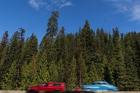 COEUR d'ALENE - Red, white and blue, screaming freedom in the wind from the top of a gigantic evergreen in the forest. That's Idaho.