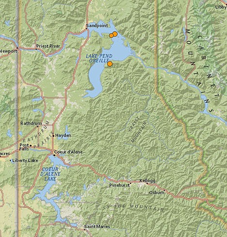 The second hit at 10:43 p.m. Thursday and registered magnitude 4.2., with an epicenter under the lake and west of Hope. Magnitude 3.3 and 3.0 quakes struck hours later, one east of Sandpoint and one 7 miles north of Ponderay, according to the U.S. Geological Survey.