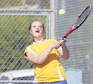 Kaylene Hudson vs. Brooklyn Hunt of St. Ignatius at tennis tourney Saturday.