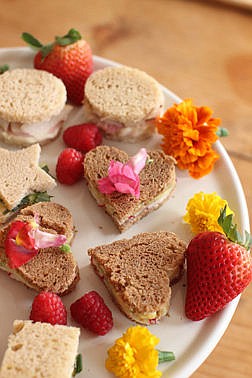 Top each sandwich with the second slice of bread. To cut the sandwiches, you can either use small cookie cutters (shapes such as ovals or hearts are fine) or you can trim off the crusts, then cut each sandwich into small triangles or rectangles. If desired, secure each smaller sandwich with a toothpick.