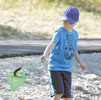 Noah Brothers (5) lands the big one Saturday during opening day at the kids' fishing pond.