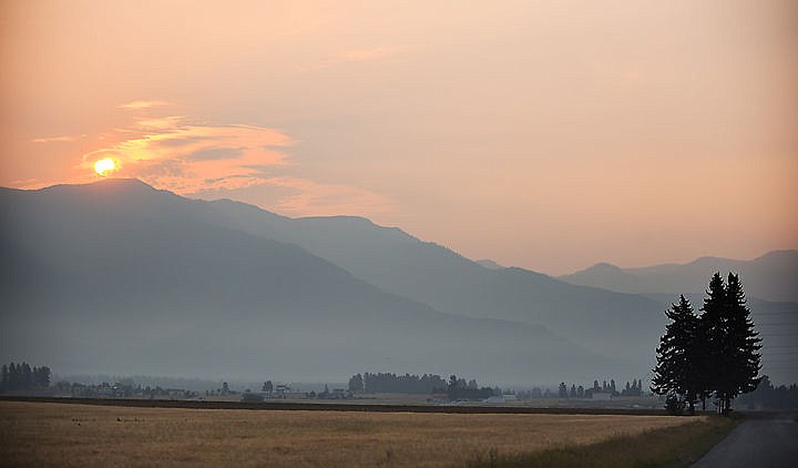 A smoky sunrise breaks over the mountains near Creston on Monday, August 3. (Brenda Ahearn/Daily Inter Lake)