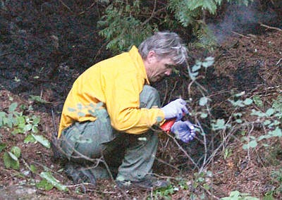 LVFD's Steve Lauer looking for evidence at the Pipe Creek fire Thursday evening.