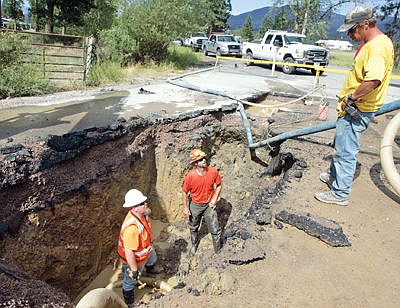 Gary Beach, left, Shad Haugen and Chuck Thom. Water leak on Education Way Aug. 11.