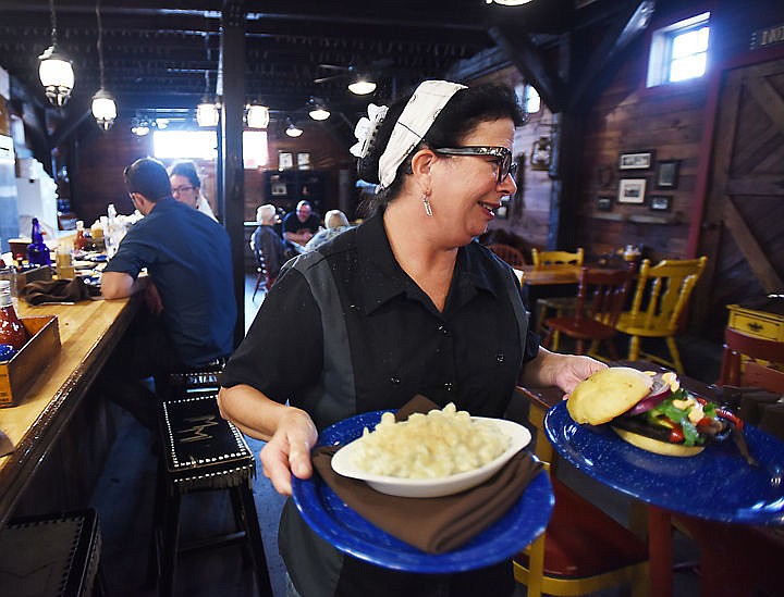 Shawnna Steele dishes up a few plates at lunch on Monday, August 17, at the DeSoto Grill in Kalispell. (Brenda Ahearn/Daily Inter Lake)