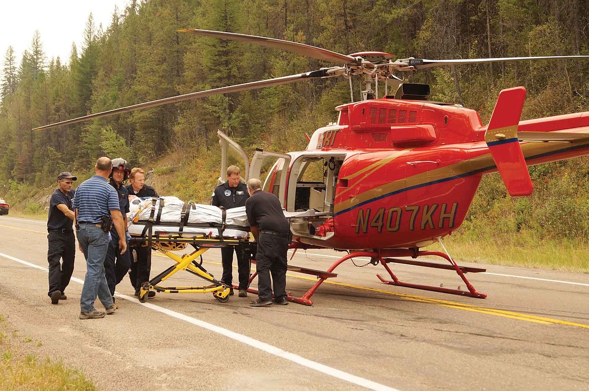The woman has not been identified and the extent of her injuries is unknown. She was transported to the hospital by the ALERT helicopter from Kalispell.