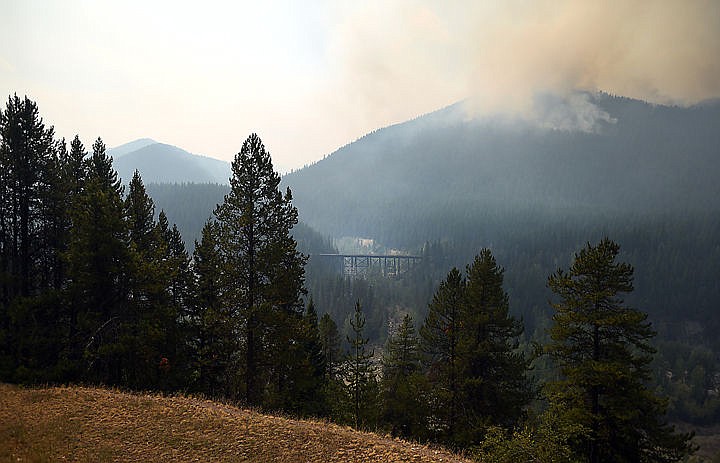 Trees torched and smoke billowed steadily Friday from the 428-acre blaze, clearly visible from the Goat Lick pullout about two miles southwest of Essex on U.S. 2. Jonathan Moor, a public information officer for the fire team managing the fire, said the wind channeling through the canyon made fire behavior hard to predict.