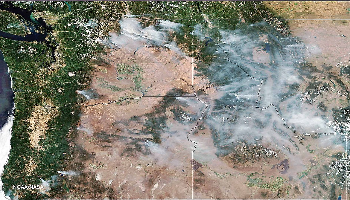 The smoke is being pushed into the area by winds blowing in from wildland fires in Washington, Idaho and Montana’s Kootenai National Forest. Kristen Martin, a state air quality meteorologist, said a particularly dense plume is coming from fires raging in Washington.