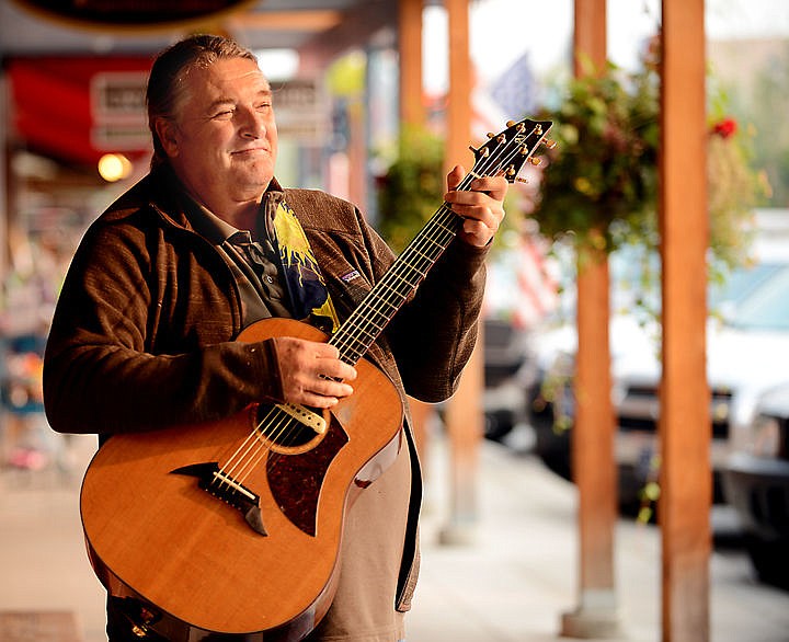 Local musician and artist Jeff Arcel plays a tune in downtown Whitefish on Aug. 24.