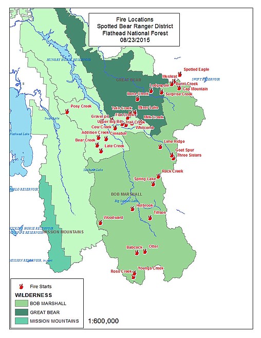 At least 249 large fires — those that burned at least 100 acres of timber or 300 acres of grassland or involved national resources such as smokejumpers — have scorched Northwest Montana, according to Paula Short of the Northern Rockies Coordination Center. The Kootenai National Forest has responded to 148 such fires and 96 have flared up in the Flathead National Forest.