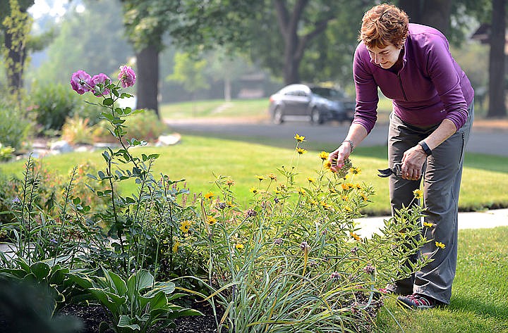 Judy Cox tends to her garden on Wednesday afternoon, August 26, in downtown Kalispell. (Brenda Ahearn/Daily Inter Lake)