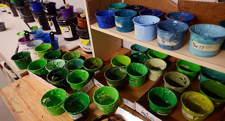 Detail of paints used in screen printing at the Montana Shirt Company on Thursday, August 27, in Whitefish. (Brenda Ahearn/Daily Inter Lake)