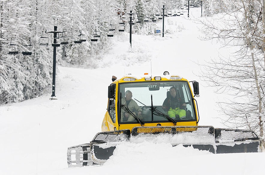 A groomer works a trail near chair 3 at the Whitefish Mountain Resort on Thursday. Chair 3 will be running when the resort opens on Saturday. (Aaric Bryan/Daily Inter Lake)
