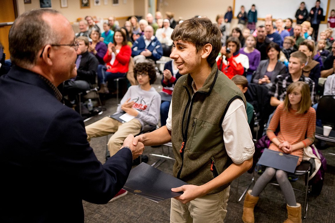 More than 70 people attended the awards ceremony, which was held in Room 1 of the Kootenai County Administration Building in Coeur d'Alene. Proud parents and supportive siblings poured into the room from the rainy evening to applaud their student writers, who submitted essays about North Idaho's historic building sites and structures.