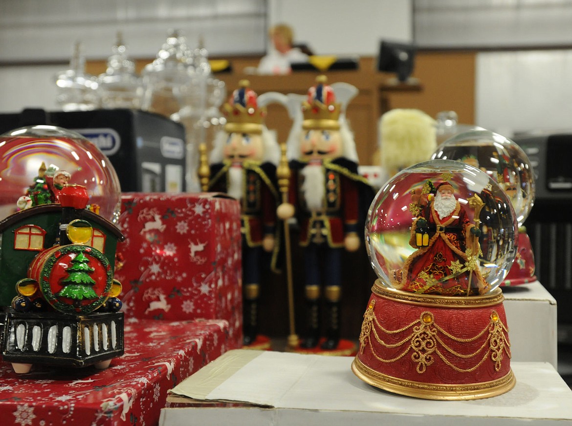 Snow globes and nutcrackers are just a few of the items from the set of truTV's "Santas in the Barn," that will be auctioned at Gardners. (Aaric Bryan/Daily Inter Lake)