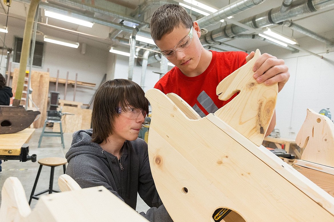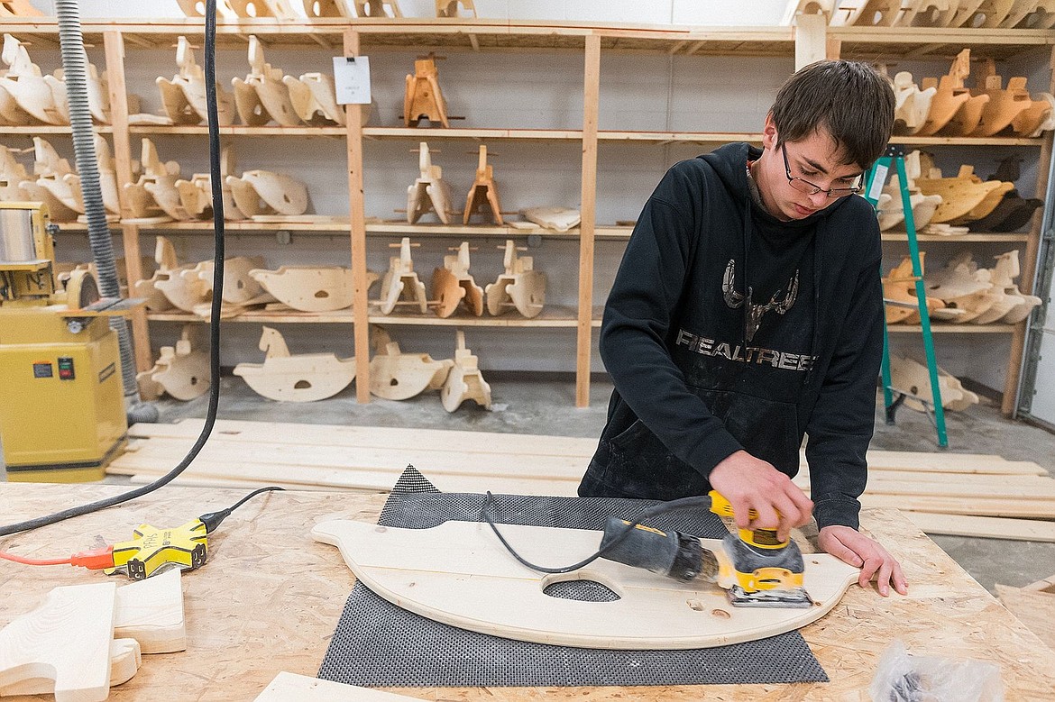 Teacher Bill Lawson said the project is a win-win because they make kids' Christmases brighter and give students experience using every power tool in the shop. Several tools and machines — including the table saw, sanders, band saw, routers and hand drills — are used during the project.