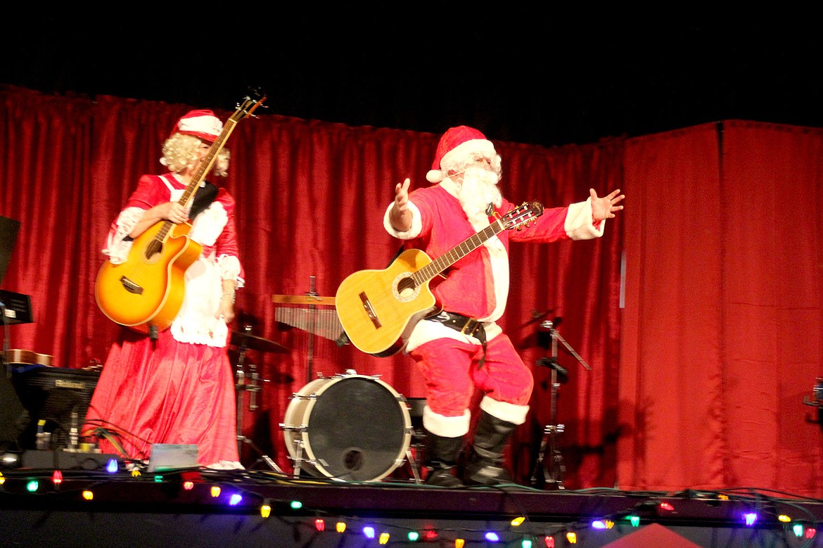 Santa and Mrs. Claus arrive at the Rex Theater to lead community members in a sing along of Christmas carols during Thompson Falls’ Christmas on Main Street celebration.