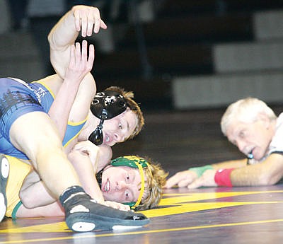 Sophomore Laine Young vs. senior James Buckley of Whitefish at 138.