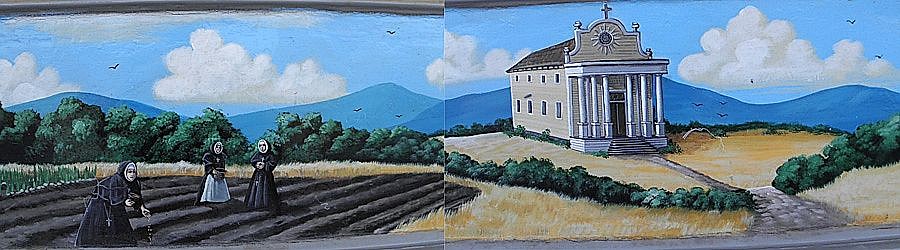 There are a dozen interior art panels available for adoption, and a dozen exterior rounding board art panels available.