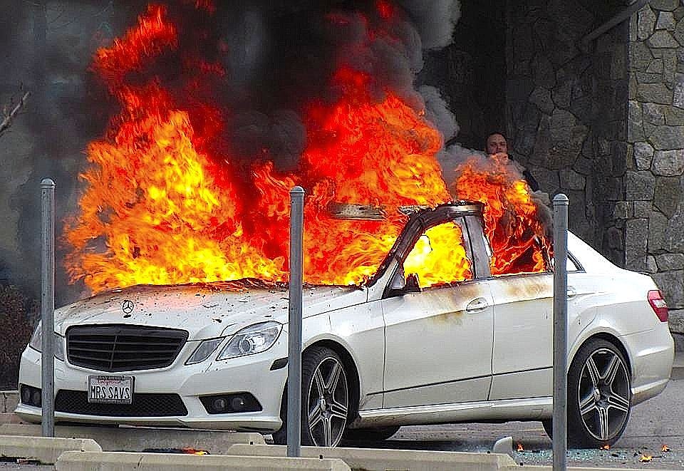 POST FALLS — Authorities believe a fire that engulfed and destroyed a 2010 Mercedes-Benz E350 car on Sunday was arson.