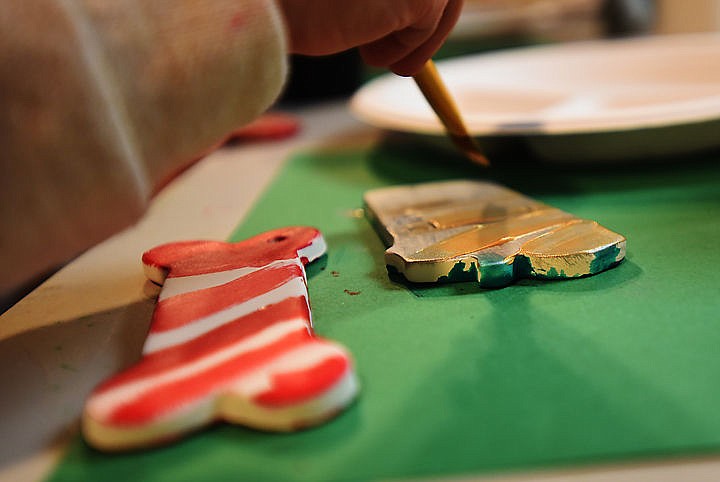 Detail of the painted ceramic ornaments at the Stumptown Art Studio Santa's Workshop on Monday afternoon, December 14, in Whitefish. (Brenda Ahearn/Daily Inter Lake)