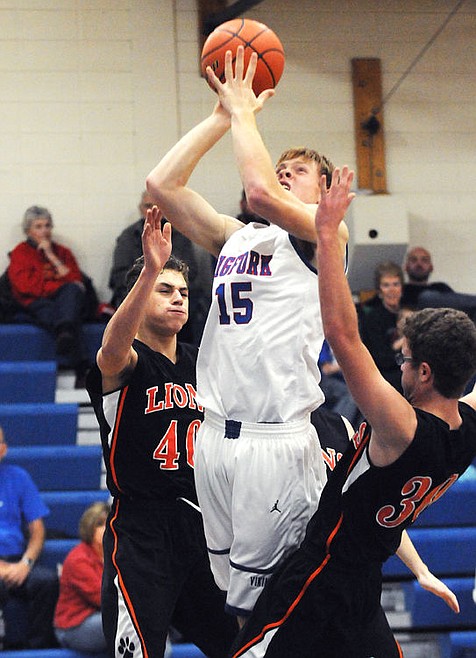 Bigfork held the Lions to two points for the first seven minutes of the third quarter, stretching its lead to 44-6. Eureka scored a pair of threes in the last minute of the third, but Bigfork found an answer at the close of the period when Levi Spanogle sunk a 3-pointer at the buzzer to give the Vikings a 49-12 lead.