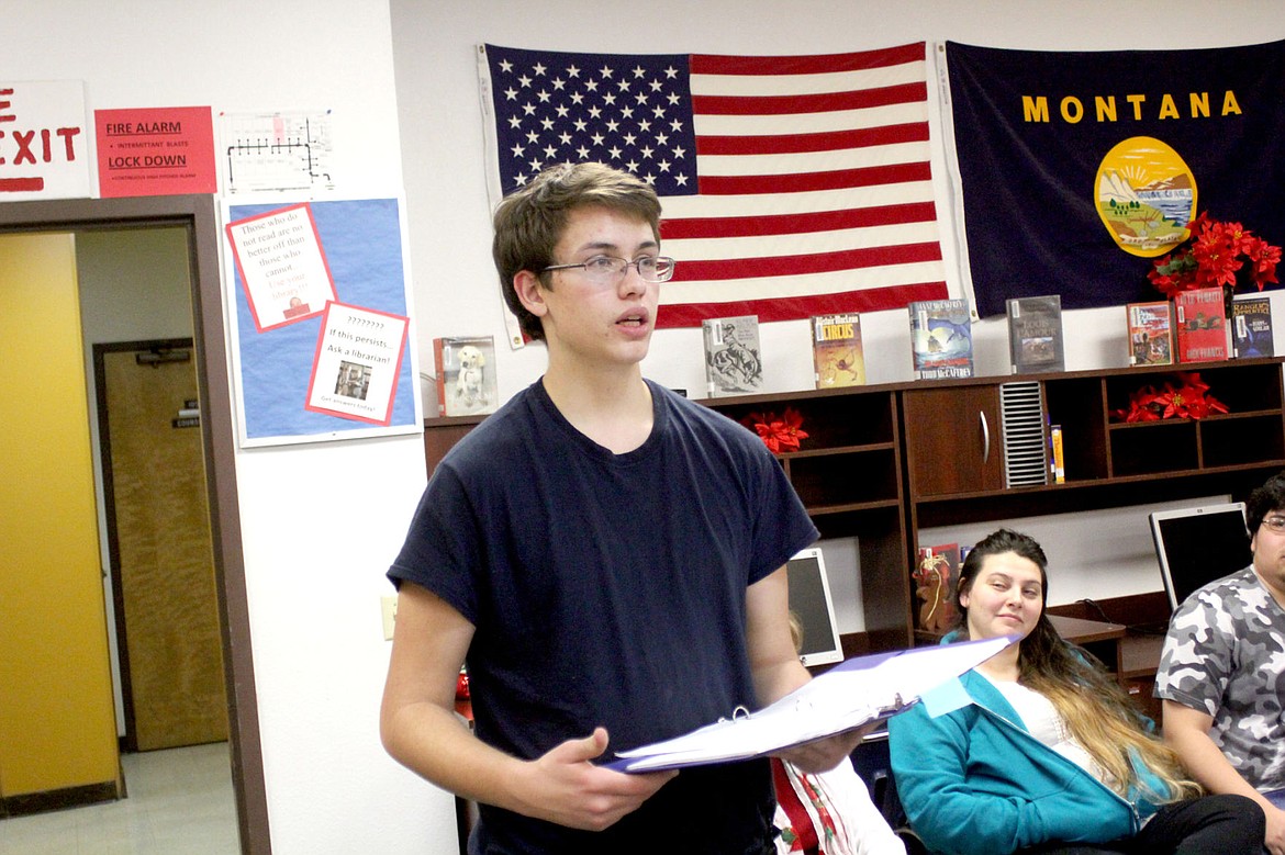 Chris Rosler explains the student council's plan to bring in water bottle refill stations to the Hot Springs School Board.
