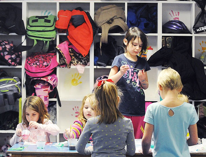 Delilah Hanson stands up to finish paint her Christmas ornament at the Boys and Girls Club of Glacier County on Thursday. (Aaric Bryan/Daily Inter Lake)