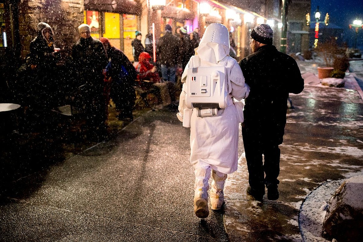 Around the corner from Vonderharr, another "Star Wars" fan wore a full Snowtrooper uniform.