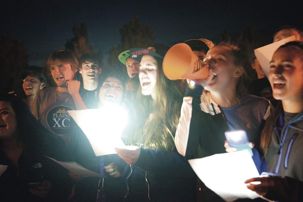 Plains High School Seniors perform cheers during the Homecoming Bon-Fire.