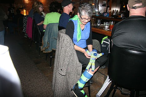 Seahawks jerseys, scarves, sweatshirts and hats could be found everywhere. Eagles member Teri Hamilton of Coeur d'Alene uniquely showed her Seahawks pride with her blue and green leg cast and handmade 12th Man sock monkey.