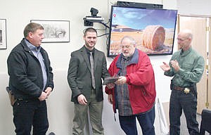John Rios, left, with Lincoln County commissioners Greg Larson, Mark Peck and Mike Cole.