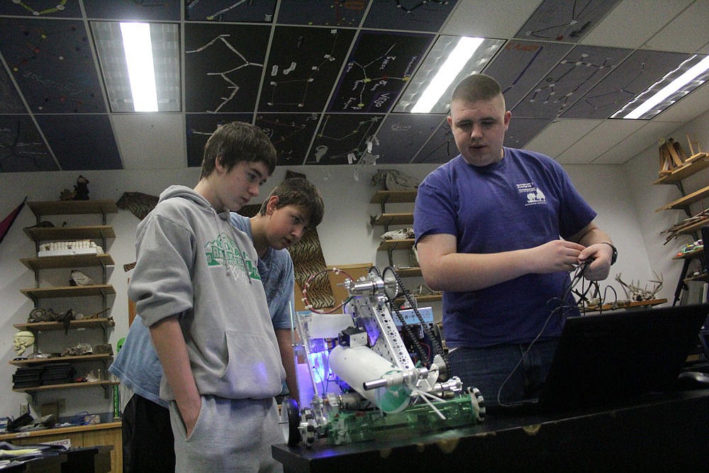 One of the St. Regis High School robotics team makes last minute adjustments to their entry into the competition in Missoula.