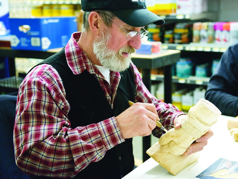 Tom Collins continues to work on one of his projects during last week's woodcarving club meeting in Plains.