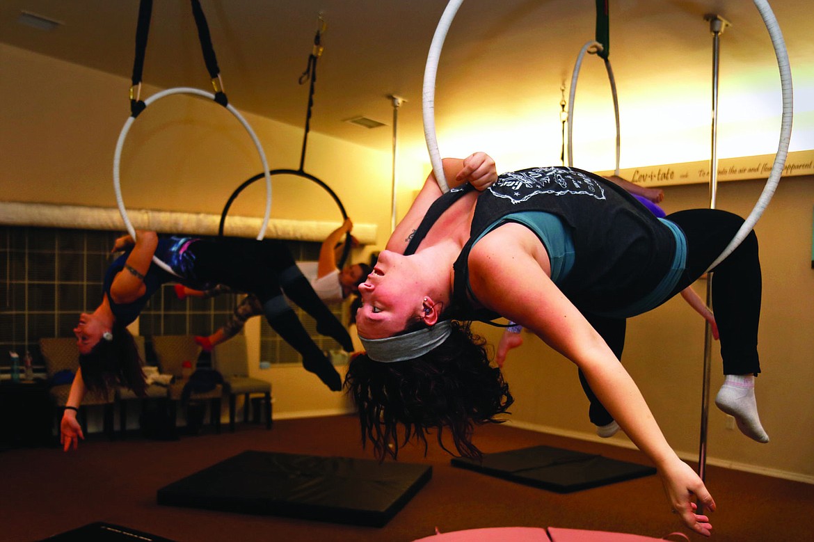 Levitation Nation offers three types of classes — aerial hoop, pole fitness and aerial yoga. Cochran teaches hoop and pole classes, while a former student, Larissa Fischer, teaches aerial yoga.