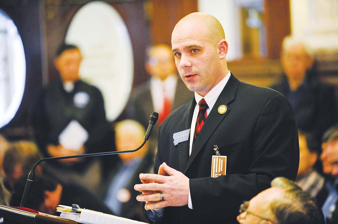 State Sen. Chas Vincent, R-Libby, talks about Senate Bill 262 — the tribal water compact — before the Senate Judiciary Committee at the State Capitol in Helena on Monday. (AP photo)