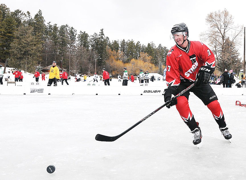 Neale Coulter of the Stick Fix Six corrals a puck during the Montana Pond Hockey Classic at Woodland Park during the 2015 tournament. On Saturday, it was announced that the event had to be canceled for 2016 due to the warm weather and unsafe ice conditions. The 2017 classic may be moved to a January weekend.